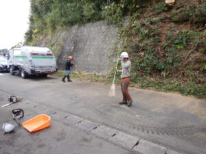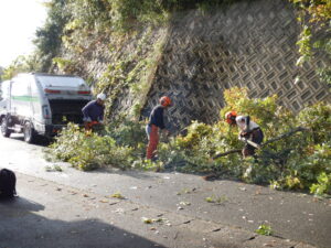 米子市福市地内の市道脇の支障木伐採作業・撤去作業をご紹介します。