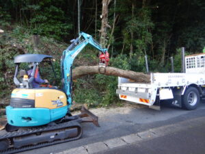 市道沿いナラ枯れ被害木の伐採撤去作業を行いました!