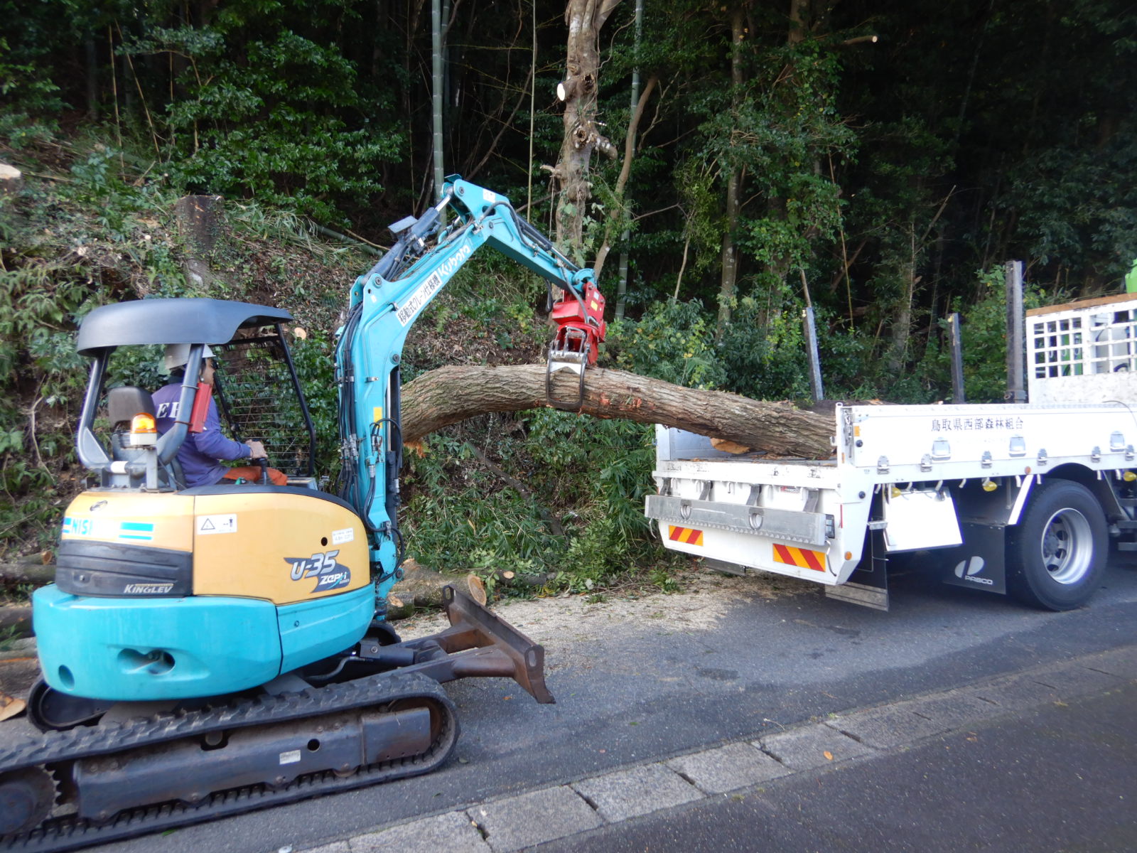 鳥取県西部森林組合では、お客様の安全と周辺環境への配慮をし、専門技術を活かした伐採作業を行っています。