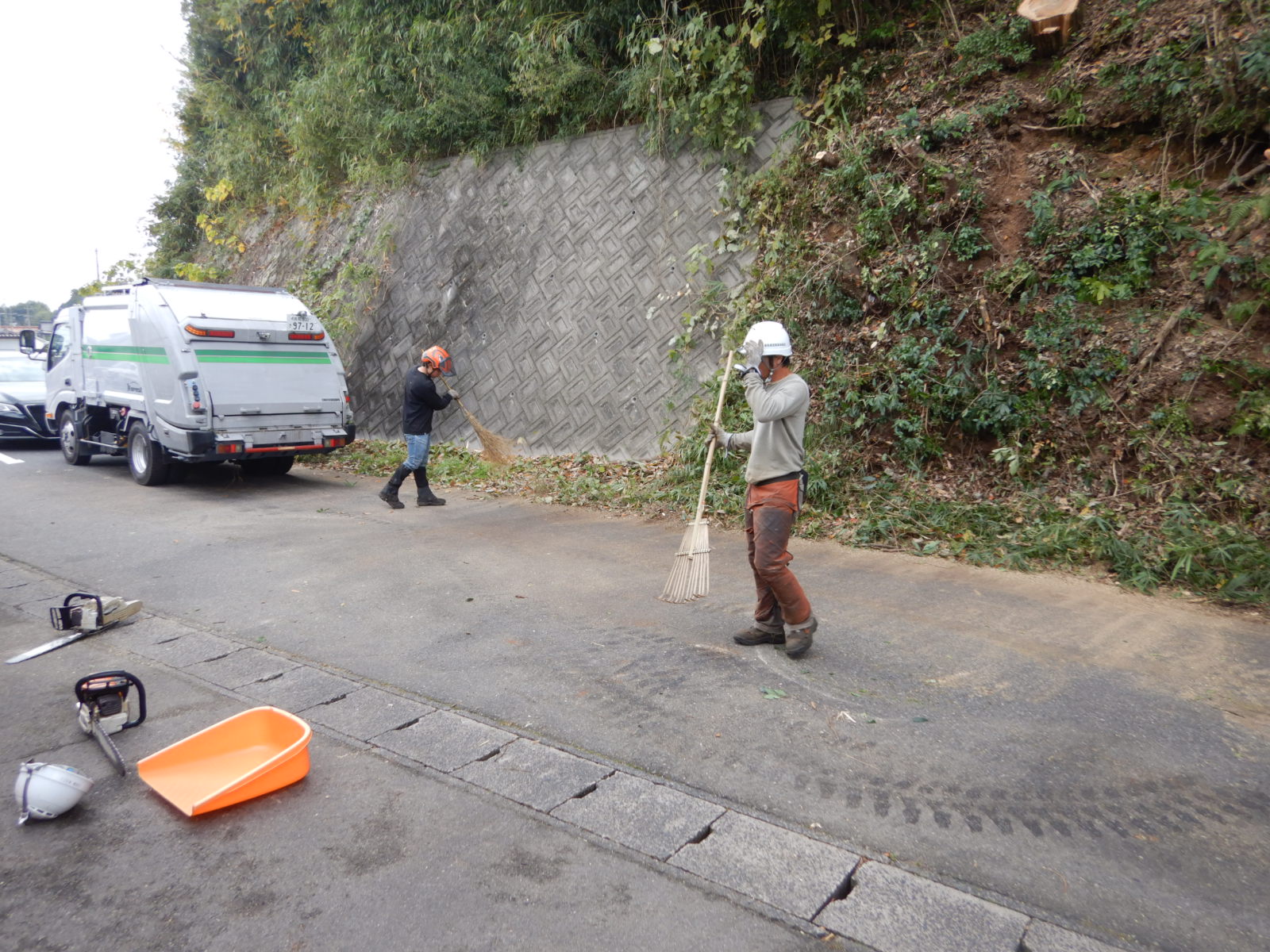 米子市福市地内の市道脇の支障木伐採作業・撤去作業をご紹介します。