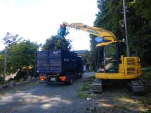 西伯郡伯耆町小林地内にあるお蕎麦屋さんのお客様駐車場内において、駐車の妨げになっていた危険木の伐採・撤去作業を実施いたしました。