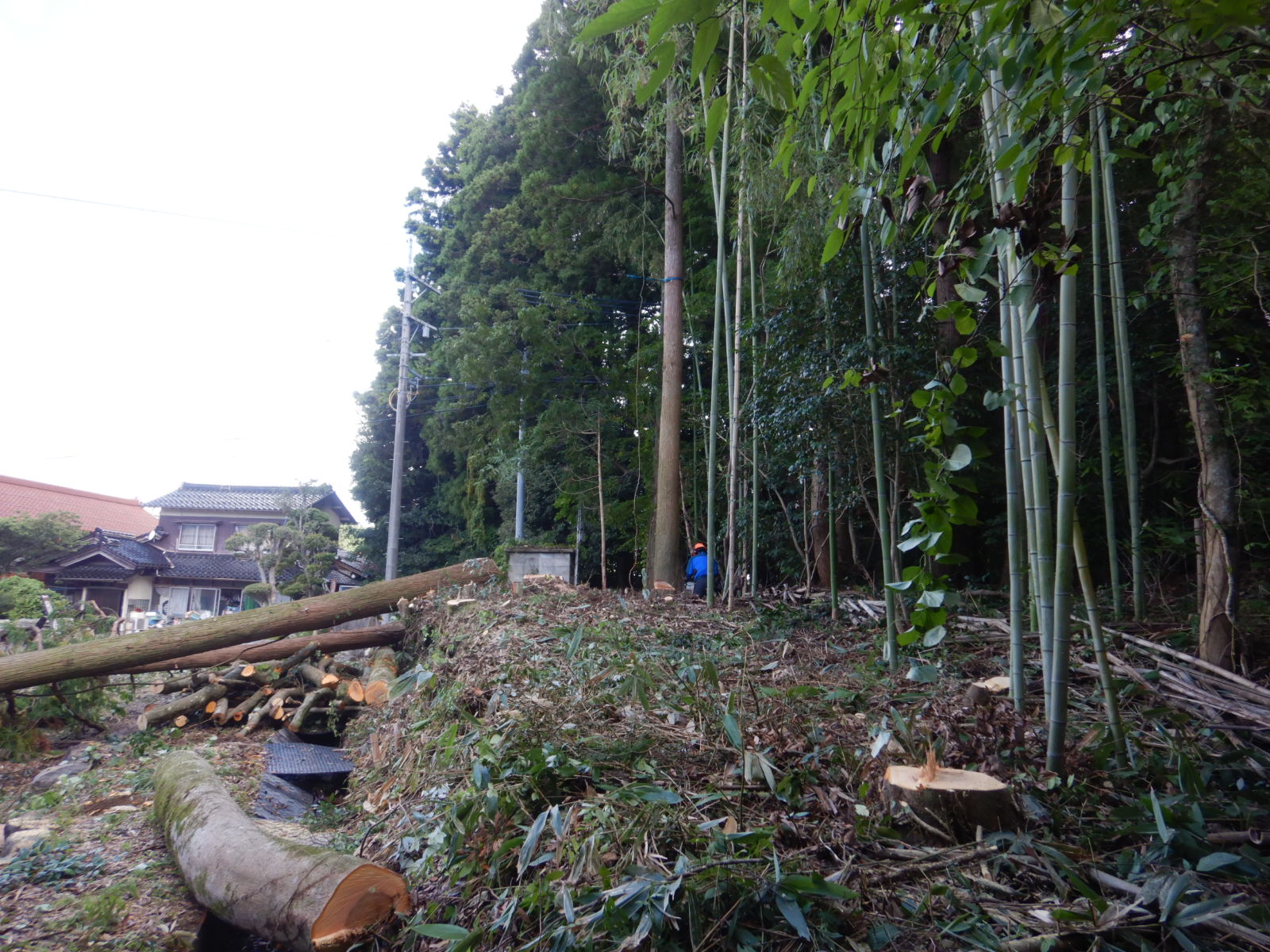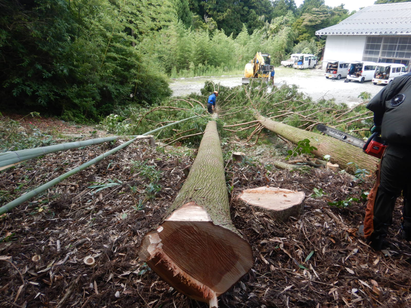 お客様駐車場の安全確保‐支障木の伐採・撤去作業を行いました!