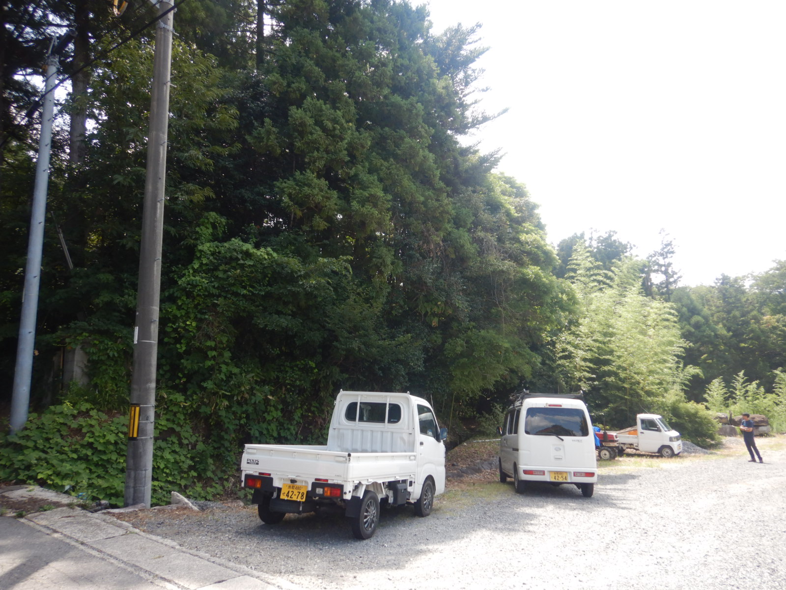 西伯郡伯耆町小林地内にあるお蕎麦屋さんのお客様駐車場内において、駐車の妨げになっていた危険木の伐採・撤去作業を実施いたしました。