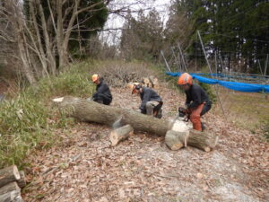 今回の作業では、伐採したコナラの木材をシイタケ栽培用ほだ木として活用されるとの事でした。