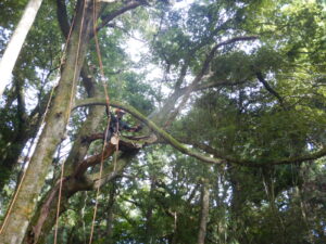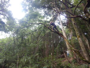 当初、町の作業員による対応がなされましたが、倒木にフジカヅラ(藤葛)が複雑に巻き付いており、通常の作業では処理が困難な状況だったとの事で緊急に依頼をいただくことになりました。