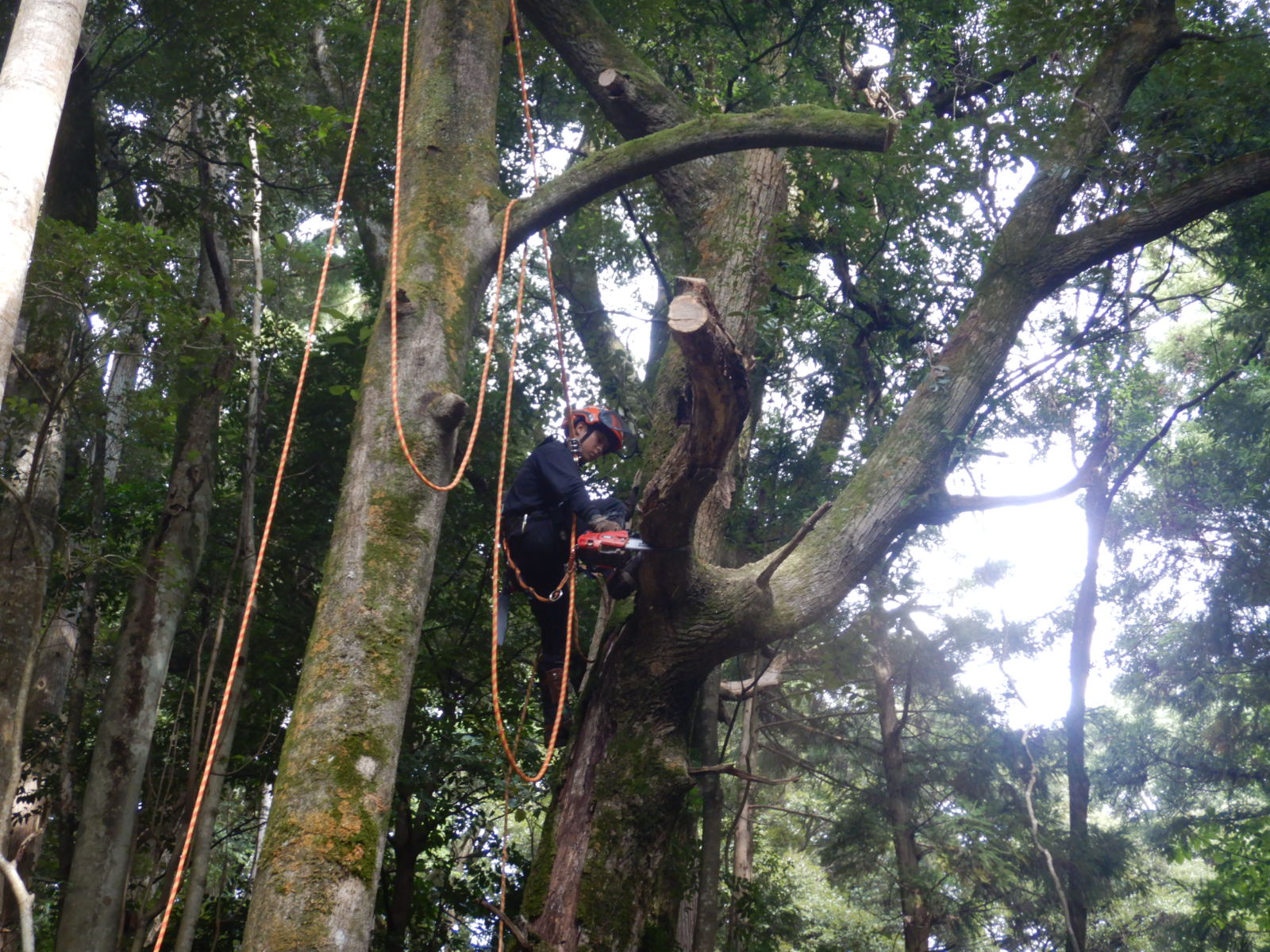 当初、町の作業員による対応がなされましたが、倒木にフジカヅラ(藤葛)が複雑に巻き付いており、通常の作業では処理が困難な状況だったとの事で緊急に依頼をいただくことになりました。