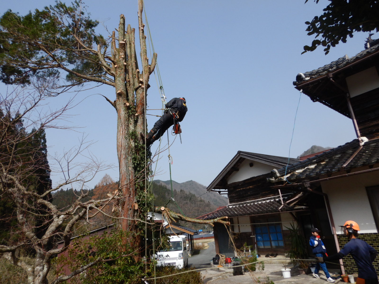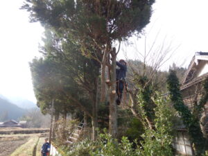 日南町南部町多里にお住いのお客様より不要木伐採作業のご依頼をいただき、作業いたしましたのでご紹介。