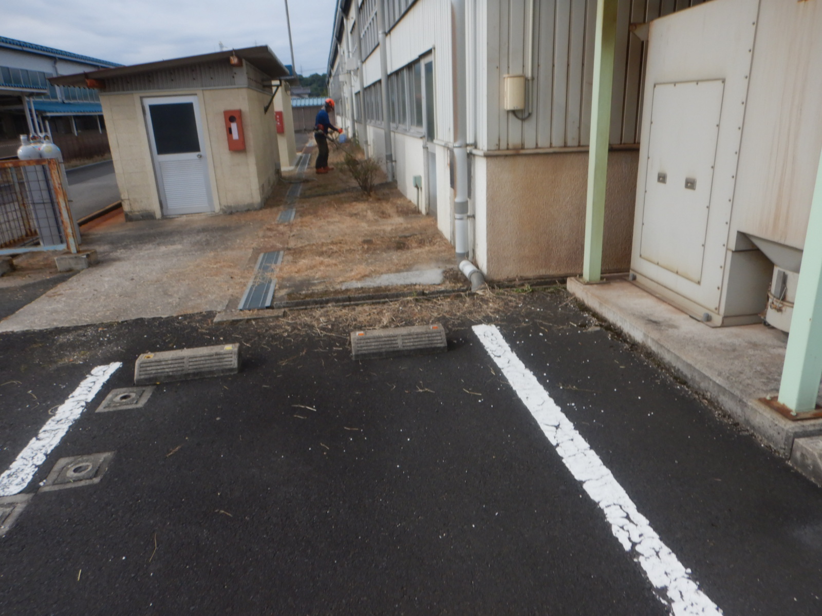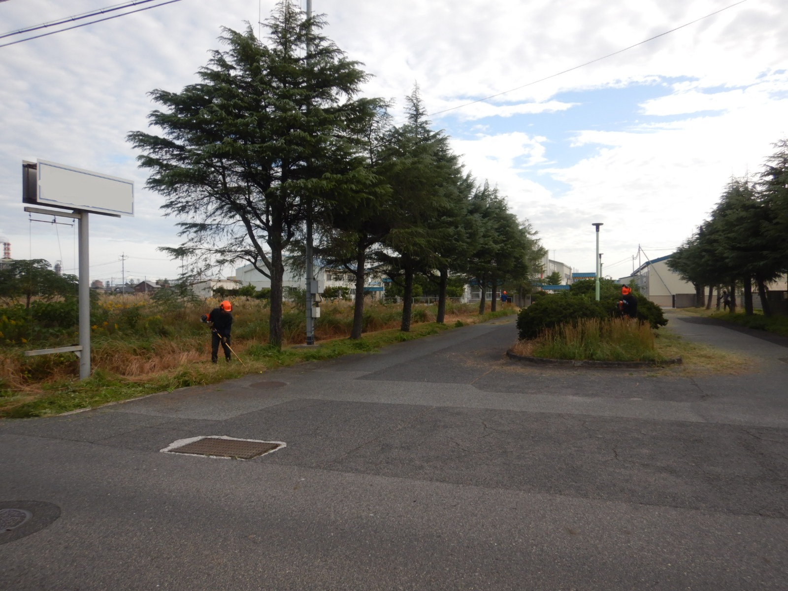 米子市内の施設において維持管理業務の一環として除草作業を実施いたしました!