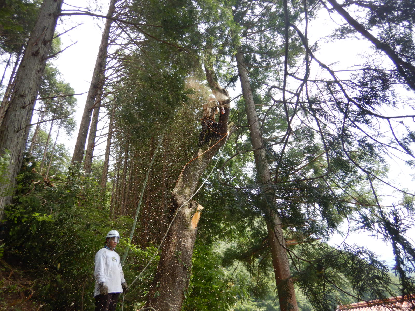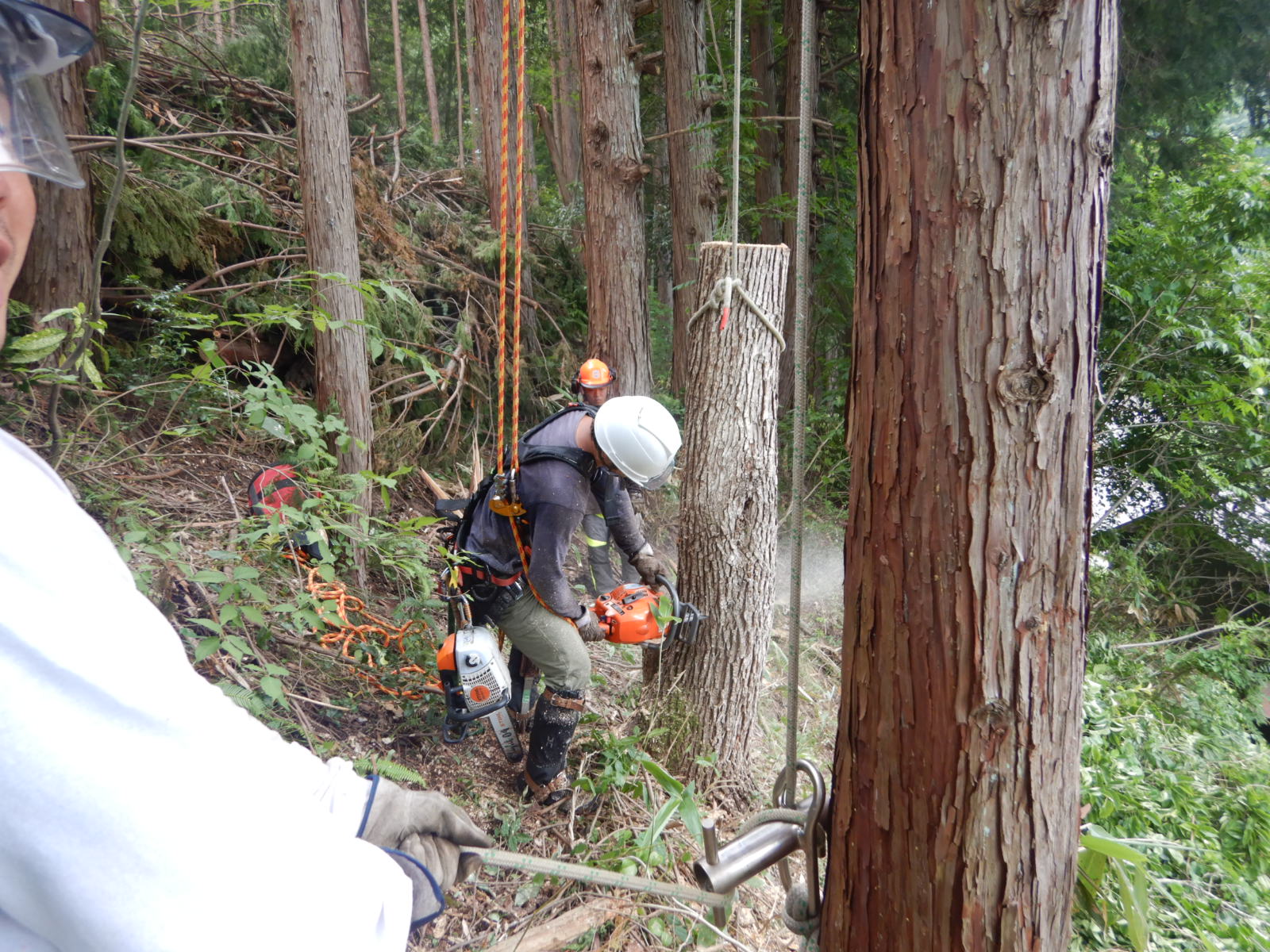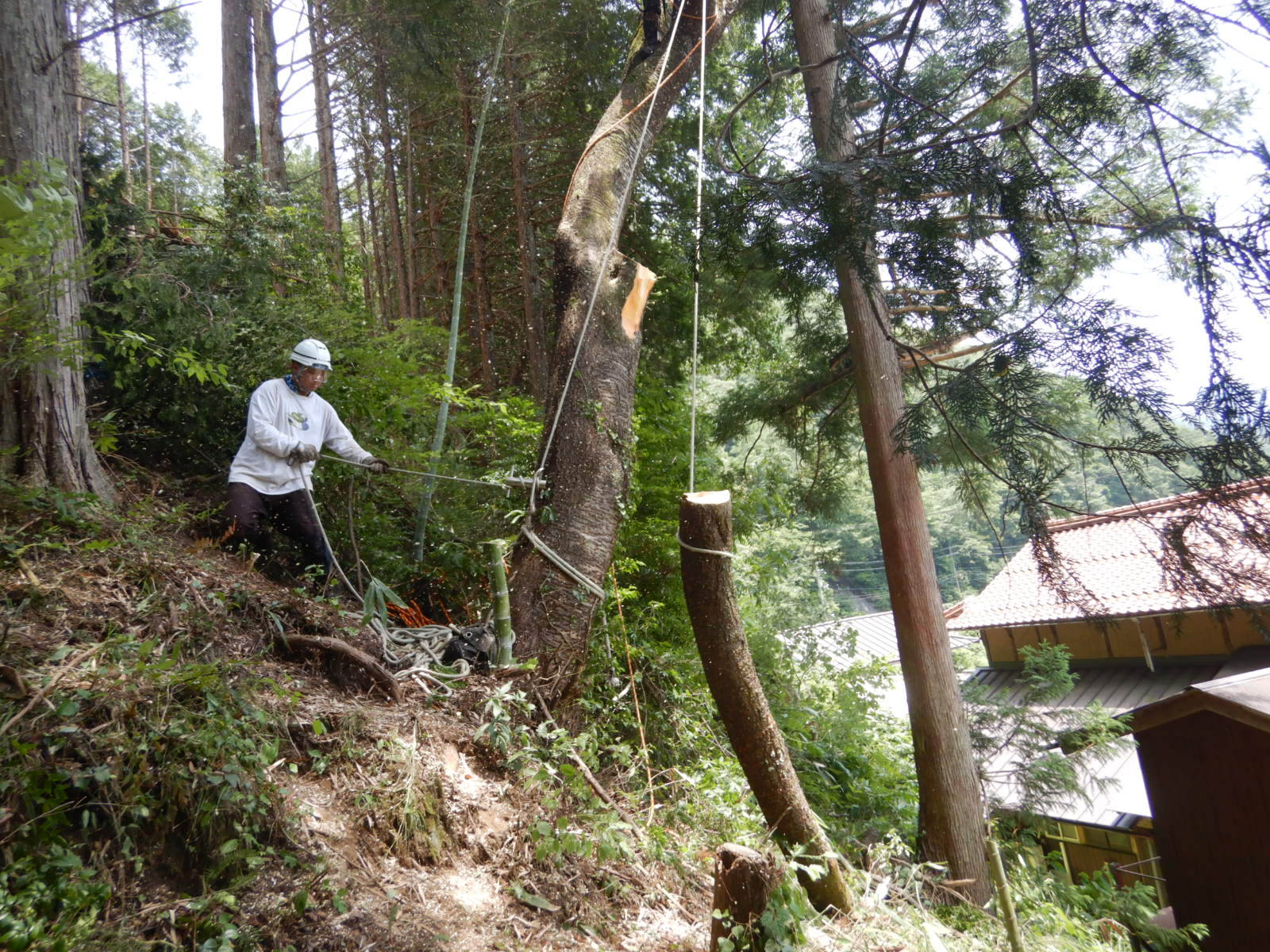 当初は別の林業会社が作業予定でしたが、対象となるヤマザクラとヤマナシの伐採について「技術的に対応が困難」とのご判断により、当組合にご依頼をいただきました。