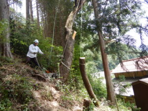 日野郡日南町生山において危険木伐採作業を行いましたのでご紹介。