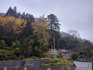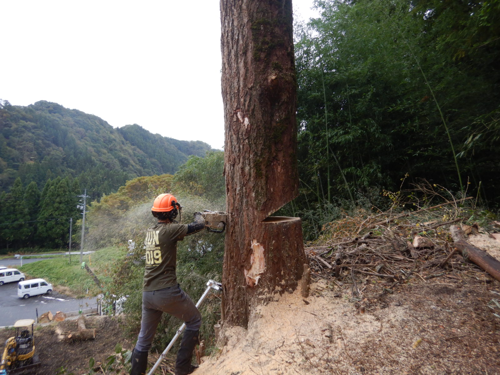 西伯郡伯耆町町内にある神社にて、樹齢90年を超える大径木の伐採作業を行いましたのでご紹介。