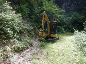 森林作業道は、林業作業の効率化だけでなく、山の管理や災害予防の面でも重要な役割を担っています。
