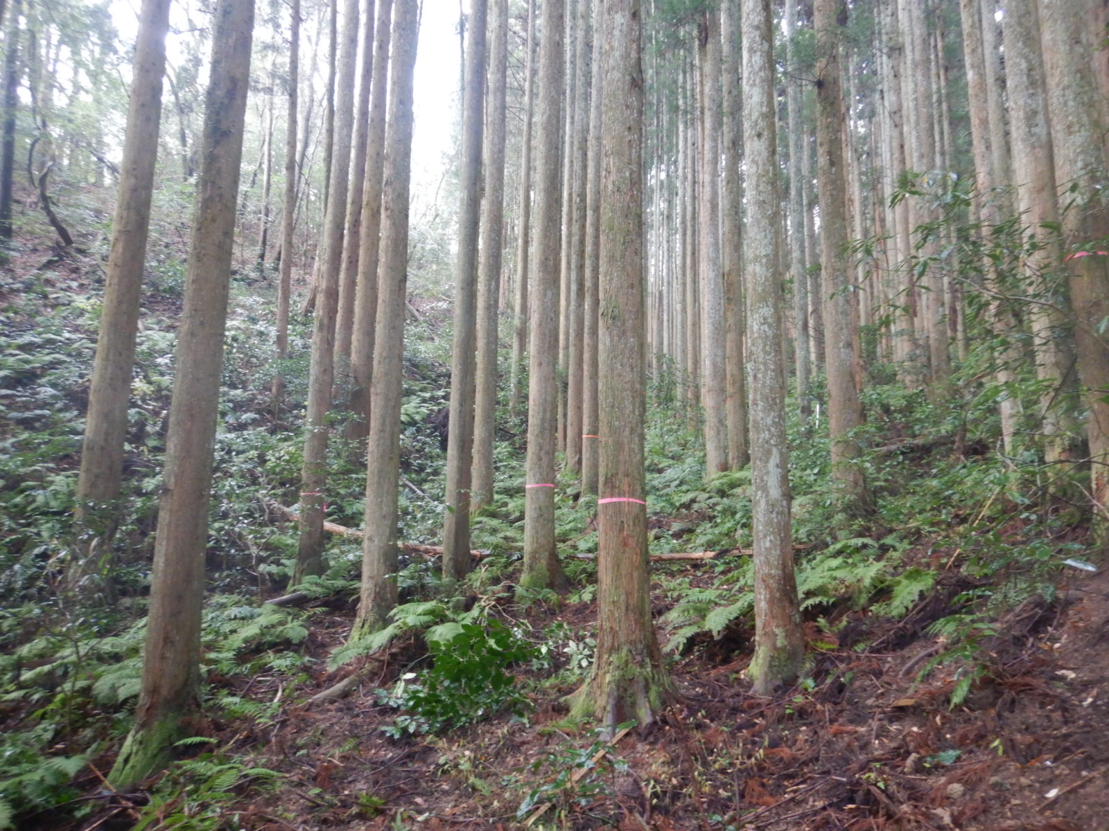 間伐は、木を“減らす”ことが目的ではなく、混み合った人工林では、光が入りにくくなり、木が細く育ったり、下層植生が少なかったりすることがあります。
