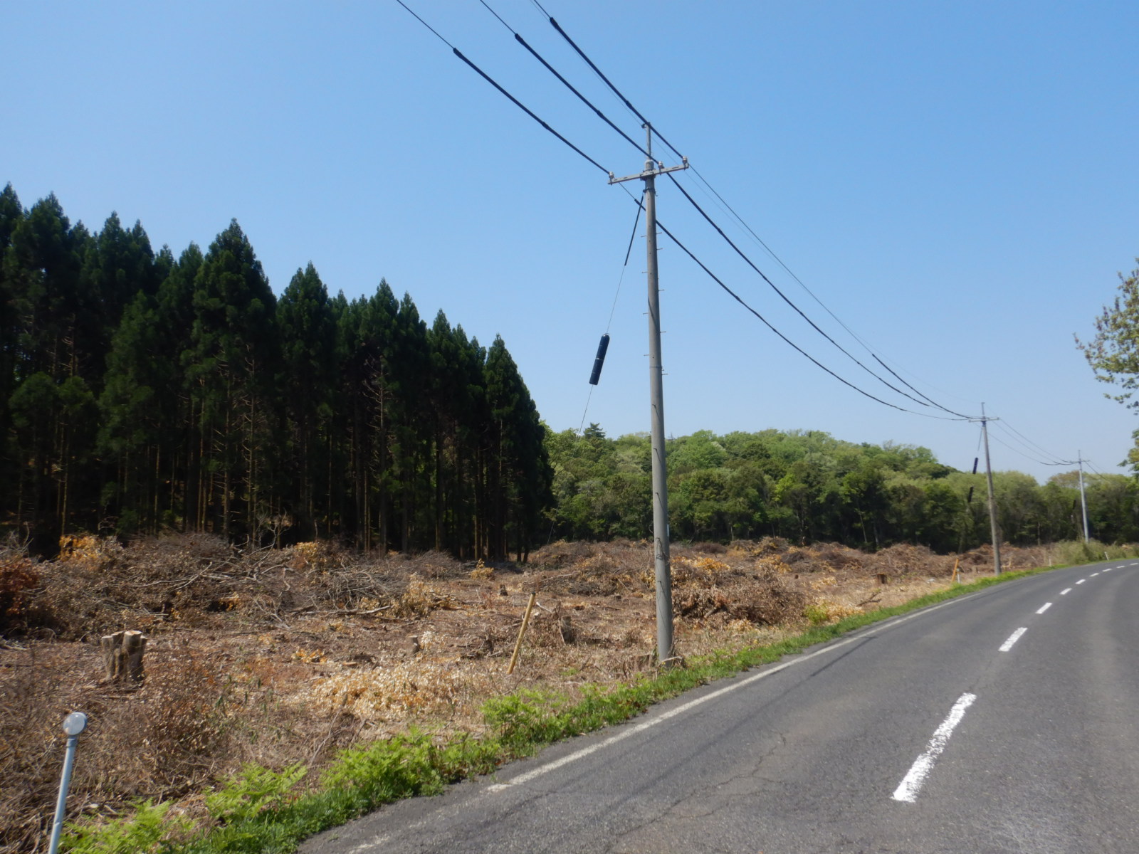 また、里山再生事業には、道路沿線の危険木の除去という役割もあります。